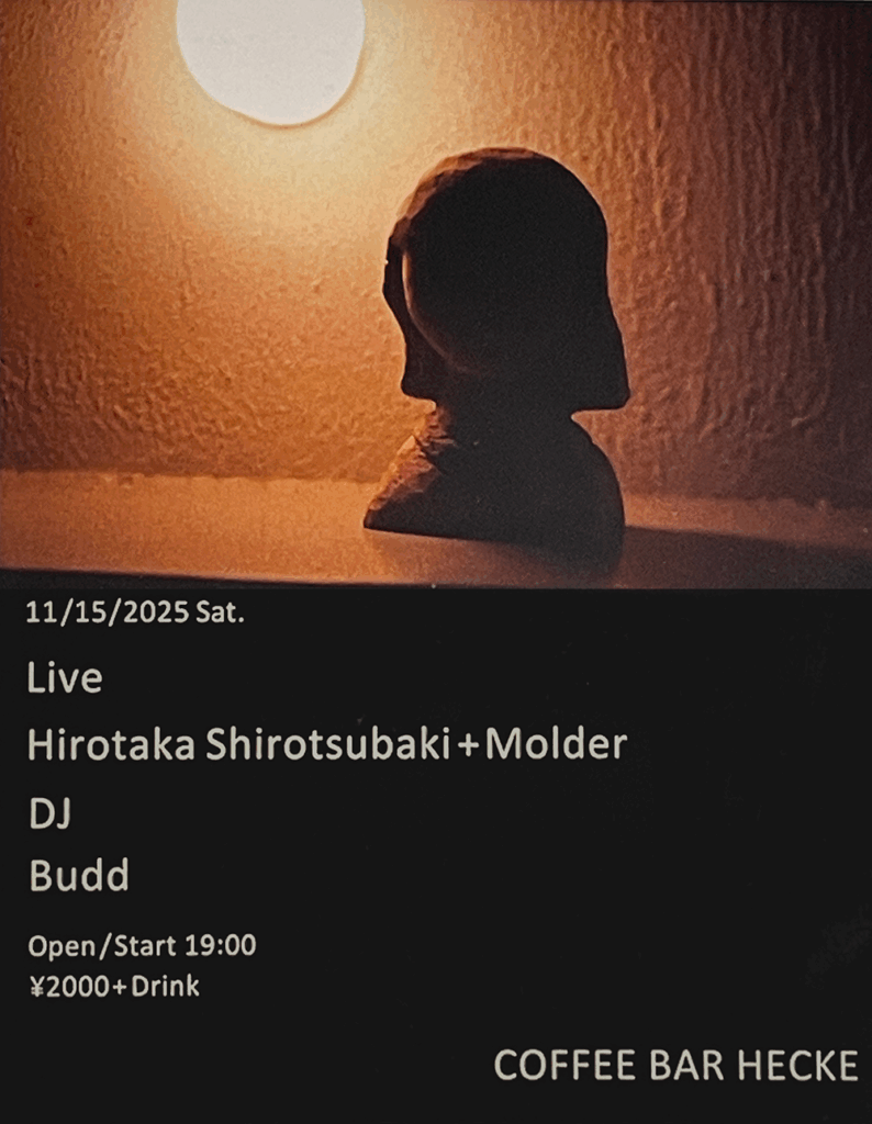 Hirotaka Shirotsubaki + Molder Live at COFFEE BAR HECKE 2025年11月15日(土)Open/Start 19:00 その他 COFFEE BAR HECKE Hirotaka Shirotsubaki Molder